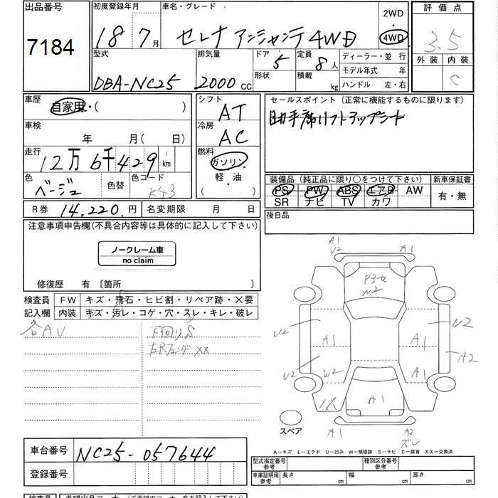 NISSAN SERENA 4WD ENCHANTE - лот 7184