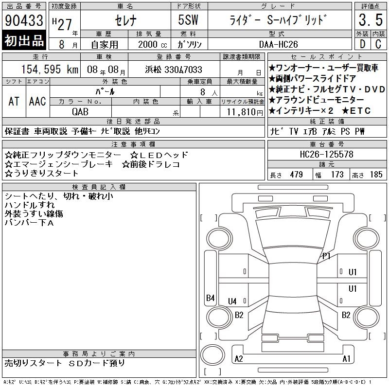 NISSAN SERENA RIDER S- HYBRID - лот 90433