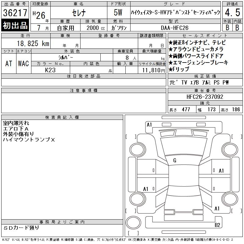 NISSAN SERENA H STAR S-HV ADVAN SE-FP - лот 36217