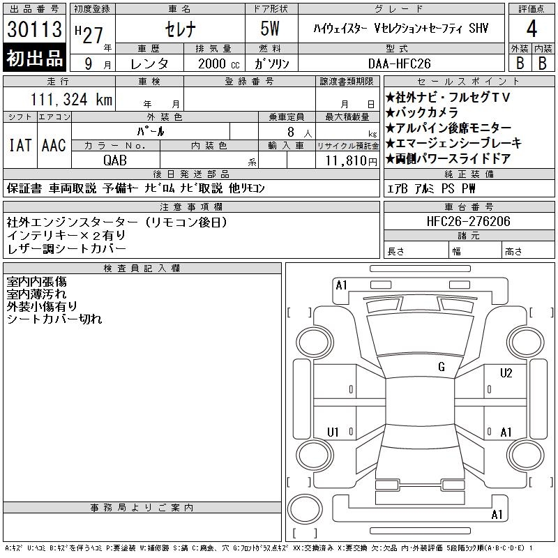 NISSAN SERENA H STAR V SELECTION +SEFTISHV - лот 30113