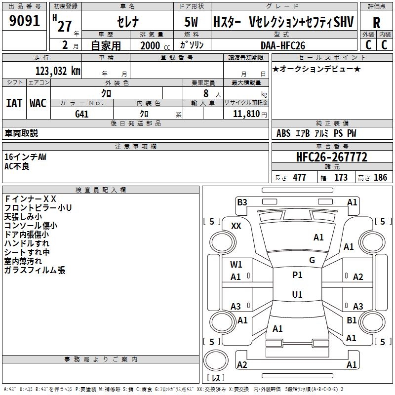 NISSAN SERENA H STAR V SELECTION +SEFTISHV - лот 9091