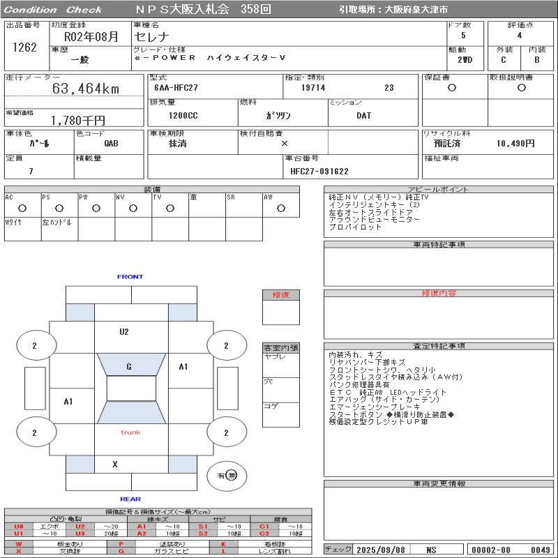 NISSAN SERENA E-POWER HIGHWAY STAR V - лот 1262