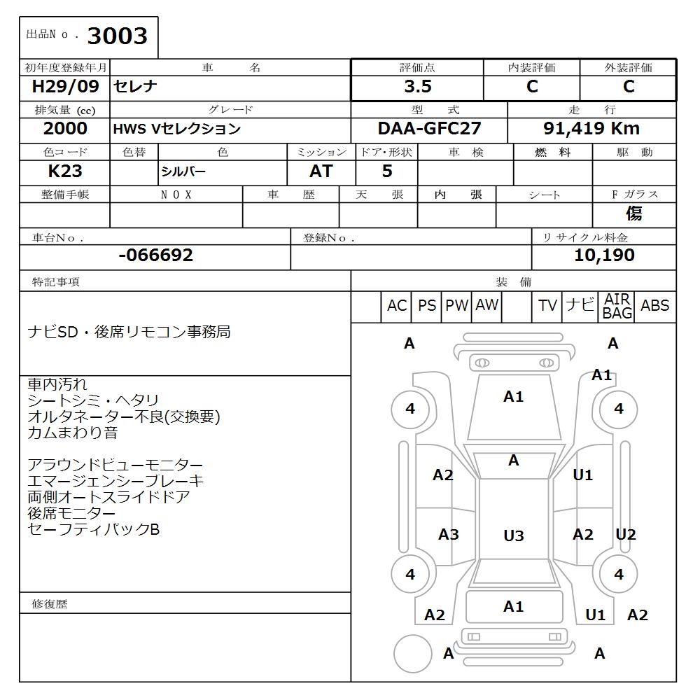 NISSAN SERENA HWS V SELECTION - лот 3003