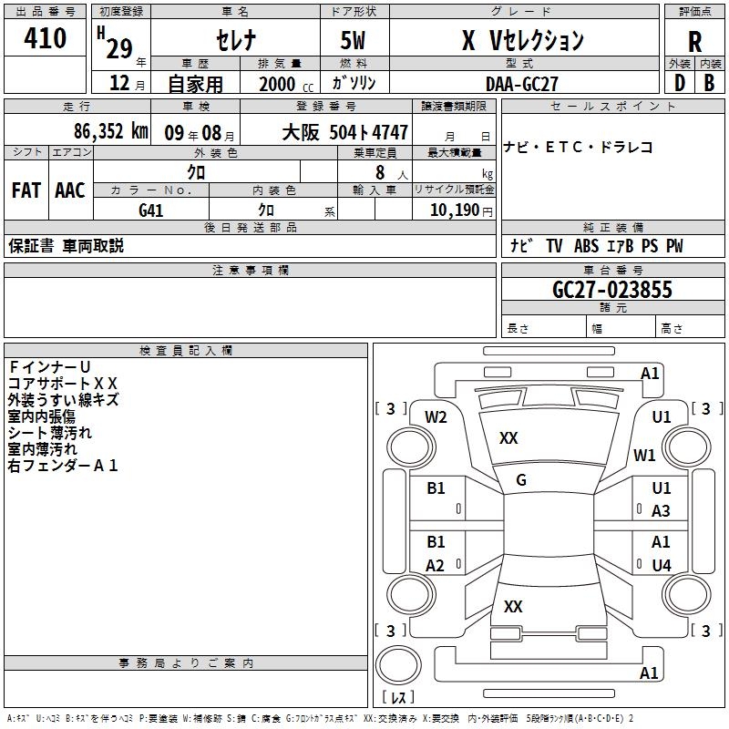NISSAN SERENA X V SELECTION - лот 410
