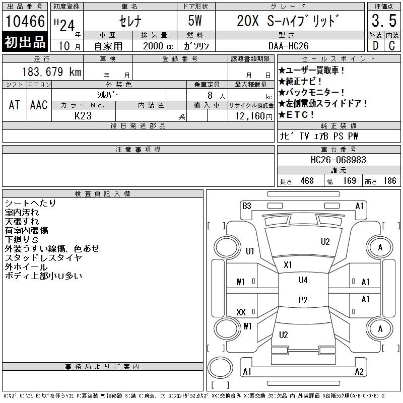 NISSAN SERENA 20X S- HYBRID - лот 10466