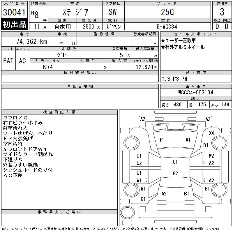 NISSAN STAGEA - лот 30041