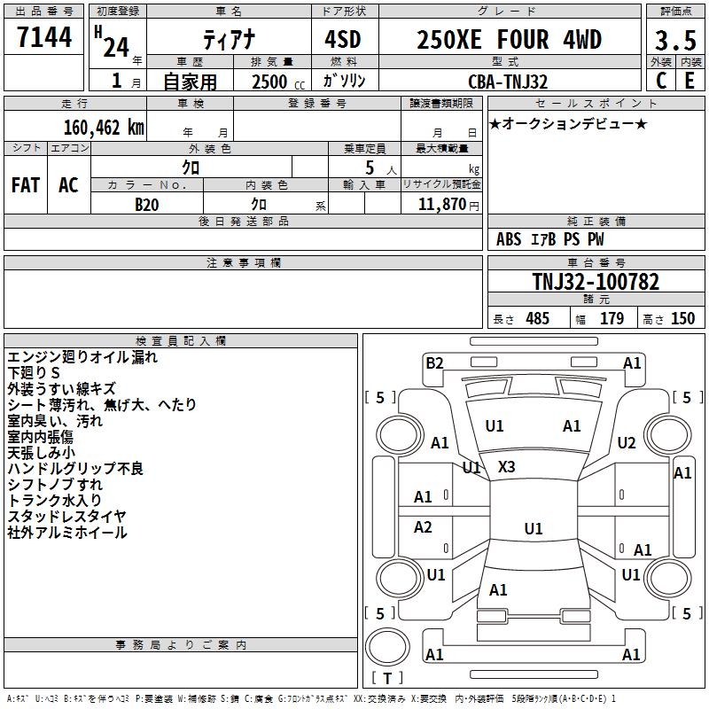 NISSAN TEANA 250XE FOUR 4WD - лот 7144
