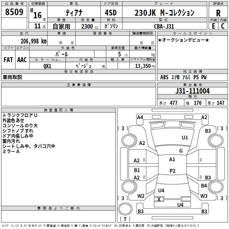 NISSAN TEANA 230JK M- COLLECTION - лот 8509
