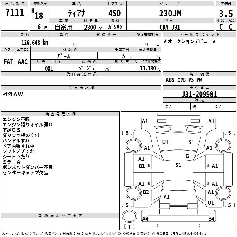 NISSAN TEANA 230JM - лот 7111
