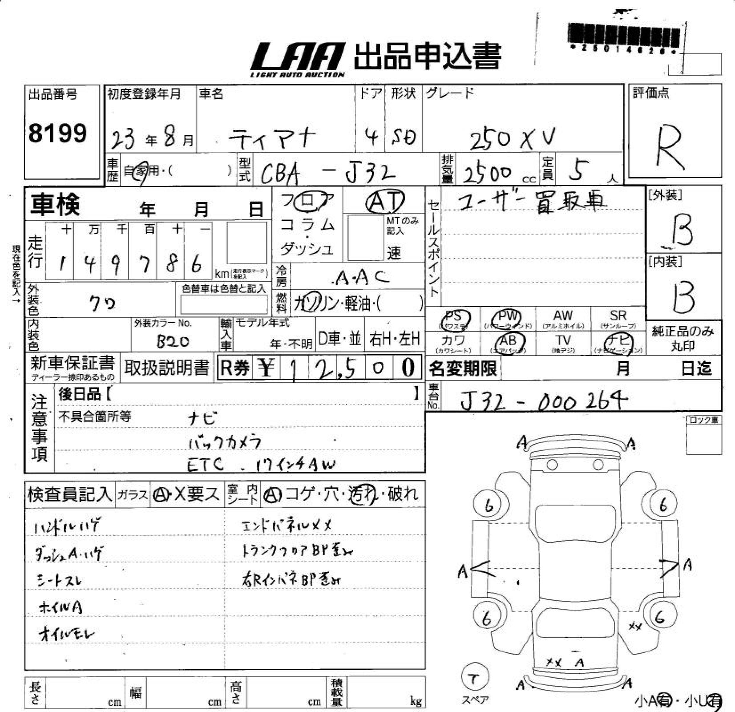 NISSAN TEANA 250XV - лот 8199