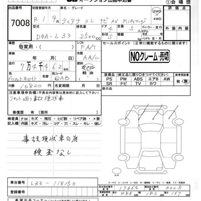 Все аукционы NISSAN TEANA