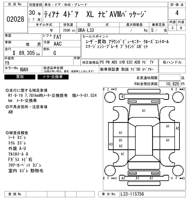 NISSAN TEANA XL NAVIGATION AVM PACKAGE - лот 2028