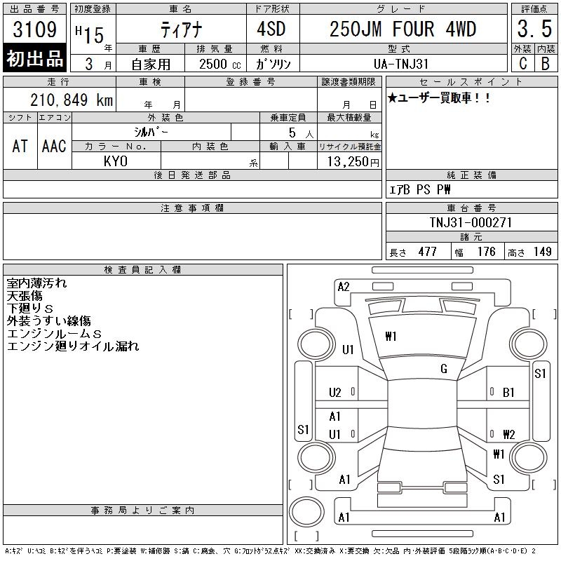 NISSAN TEANA 250JM FOUR 4WD - лот 3109