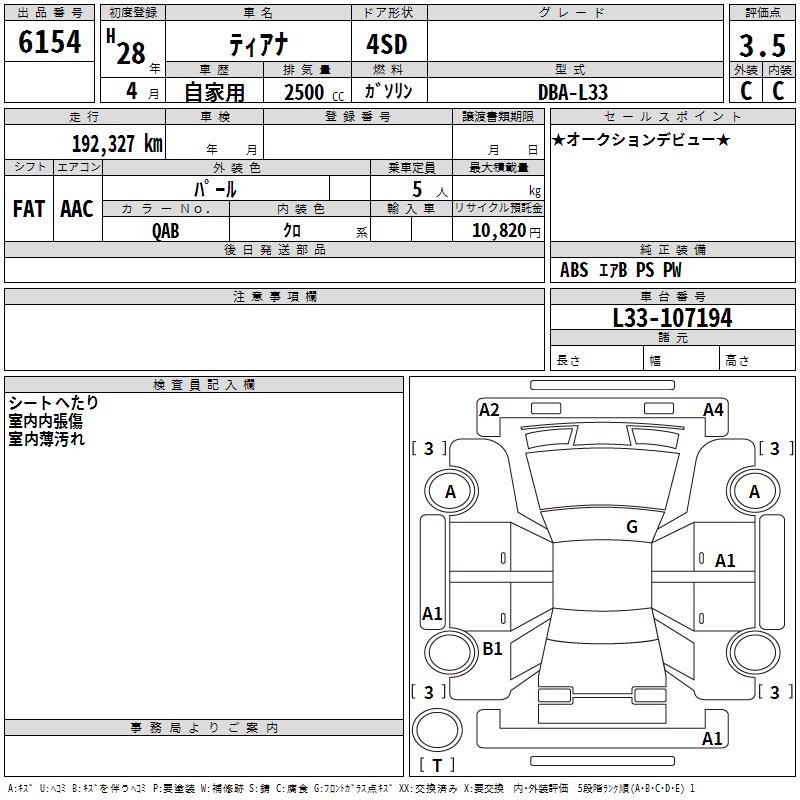 NISSAN TEANA - лот 6154