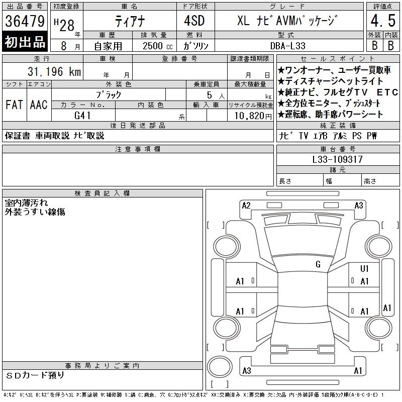 NISSAN TEANA XL NAVIGATION AVM PACKAGE - лот 36479