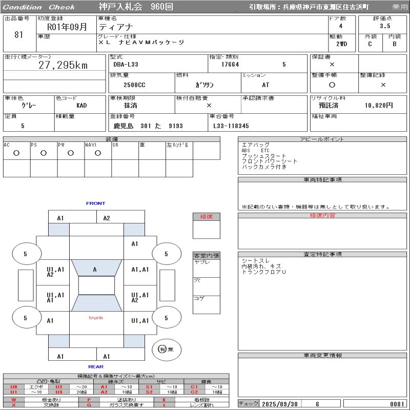 NISSAN TEANA XL NAVIGATION AVM PACKAGE - лот 81