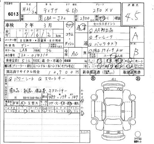 NISSAN TEANA 250 XV - лот 6013