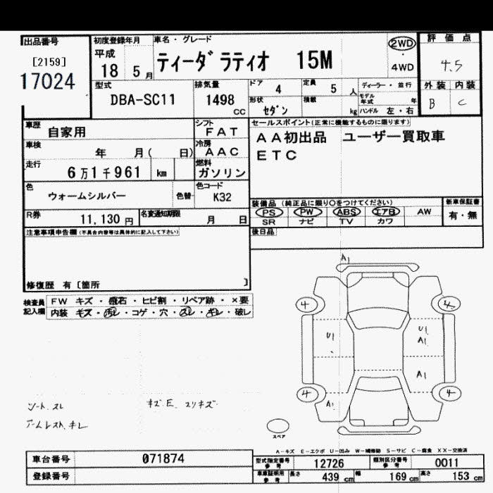 Все аукционы NISSAN TIIDA LATIO