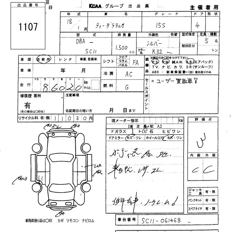NISSAN TIIDA LATIO 15S - лот 1107