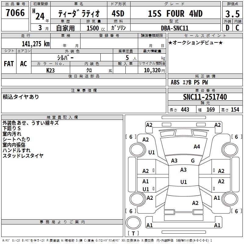 NISSAN TIIDA LATIO 15S FOUR 4WD - лот 7066