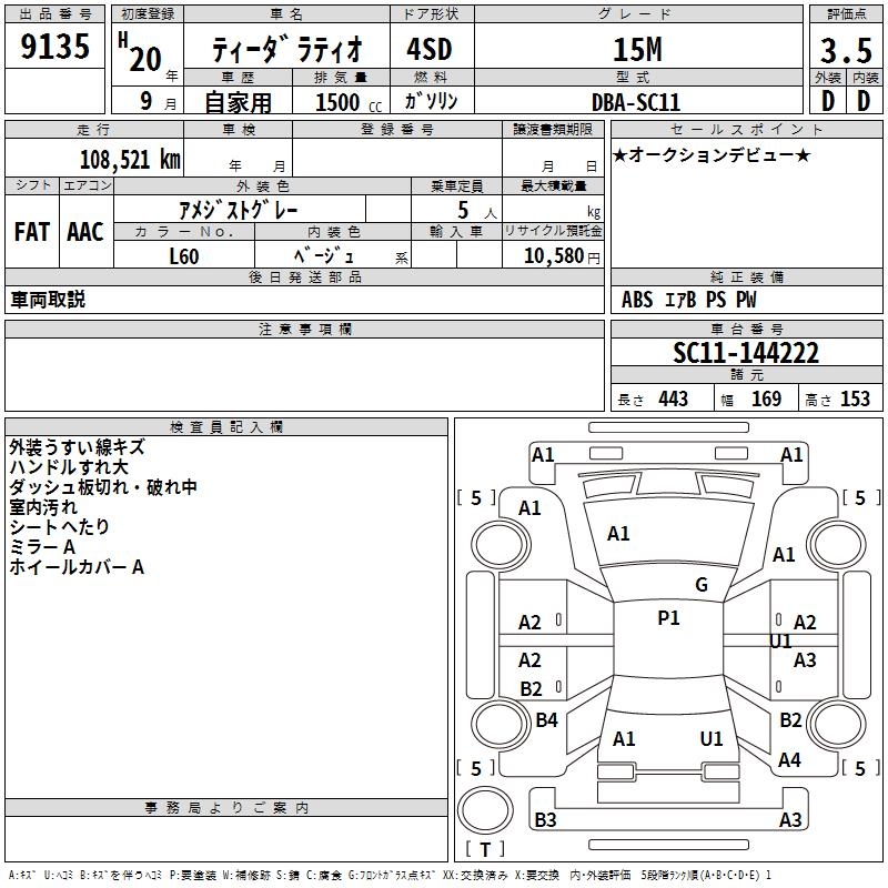 Все аукционы NISSAN TIIDA LATIO