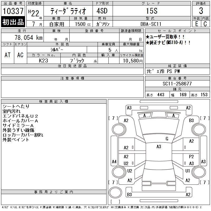 NISSAN TIIDA LATIO 15S - лот 10337