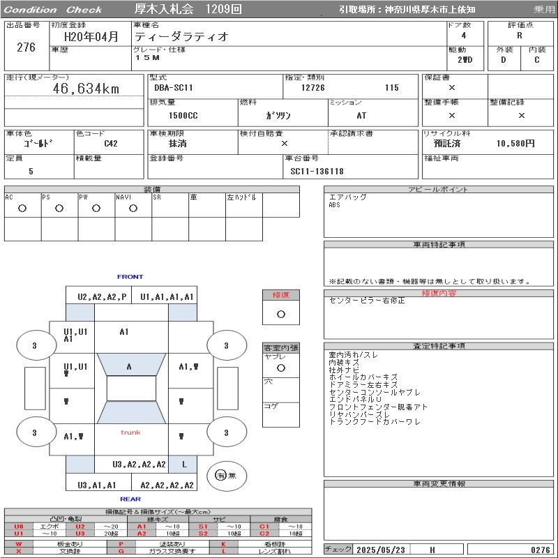 Все аукционы NISSAN TIIDA LATIO