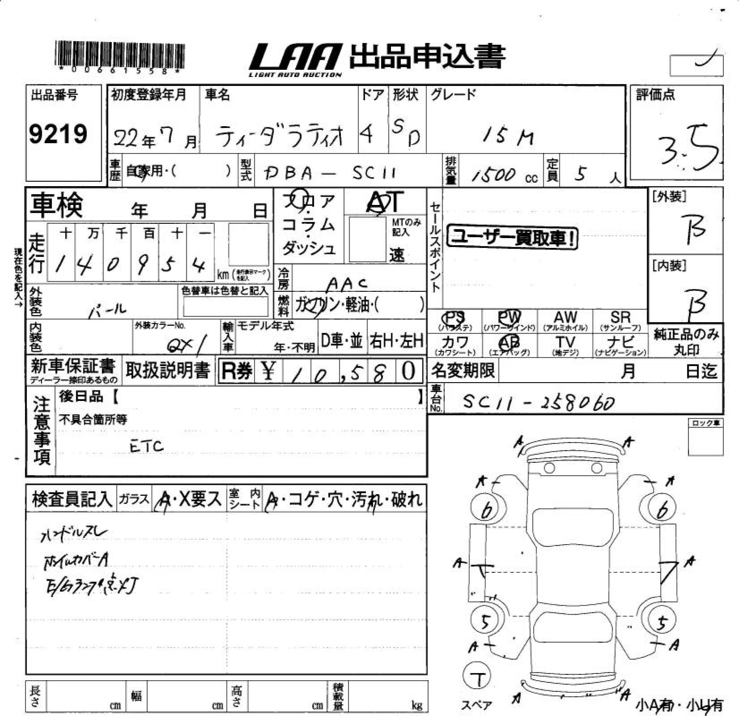 Все аукционы NISSAN TIIDA LATIO