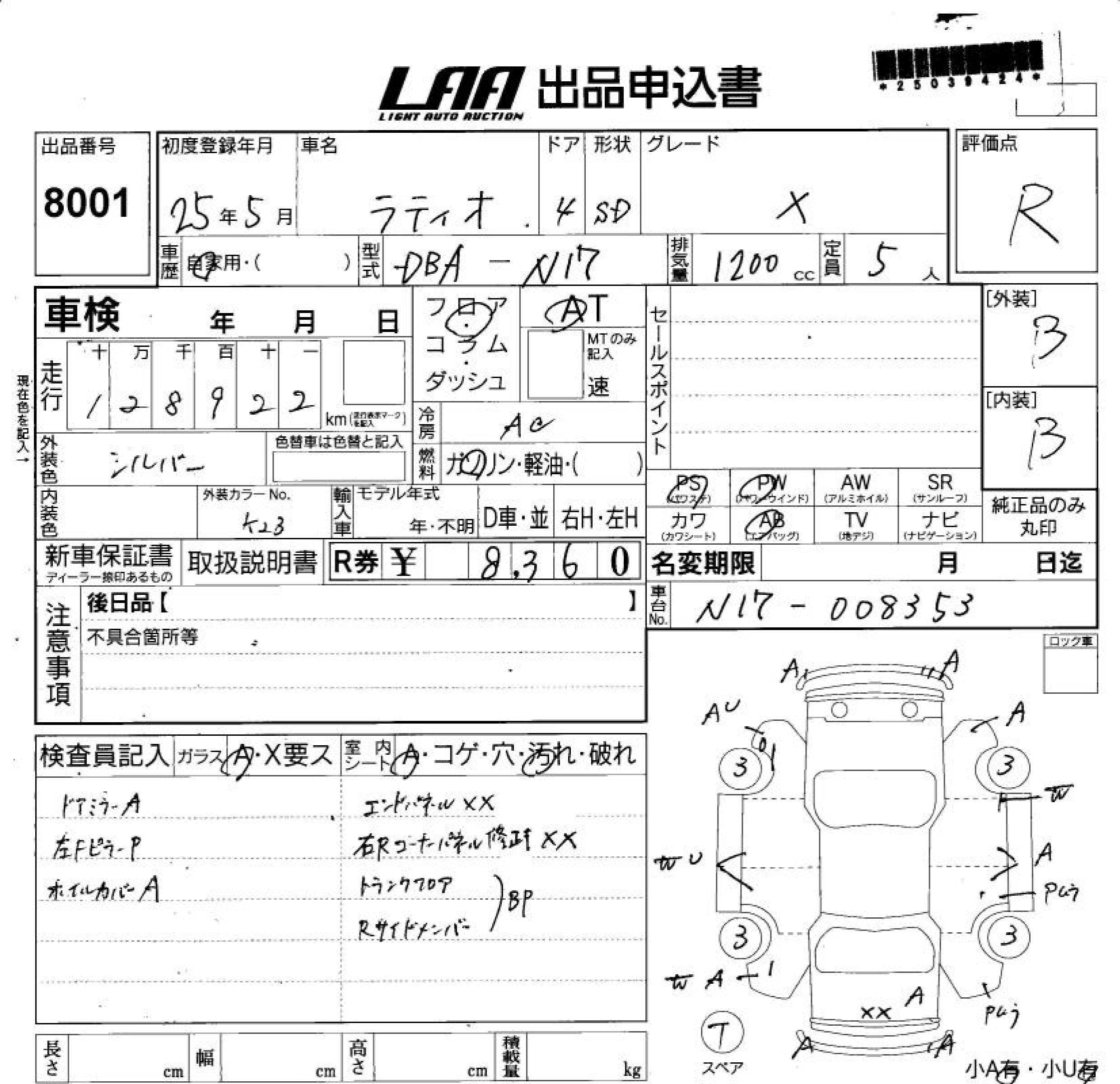 NISSAN TIIDA LATIO X - лот 8001