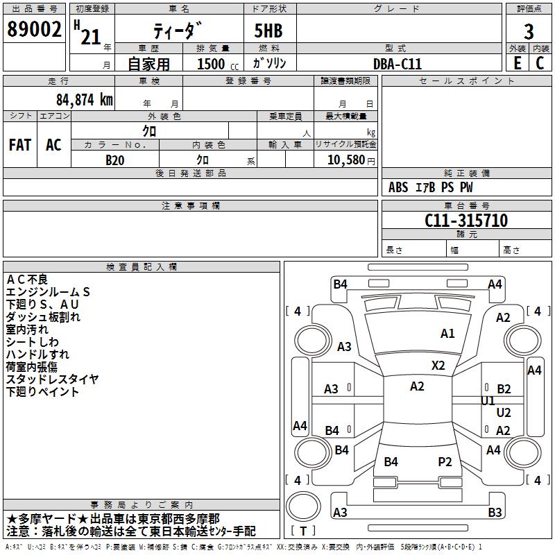 NISSAN TIIDA - лот 89002