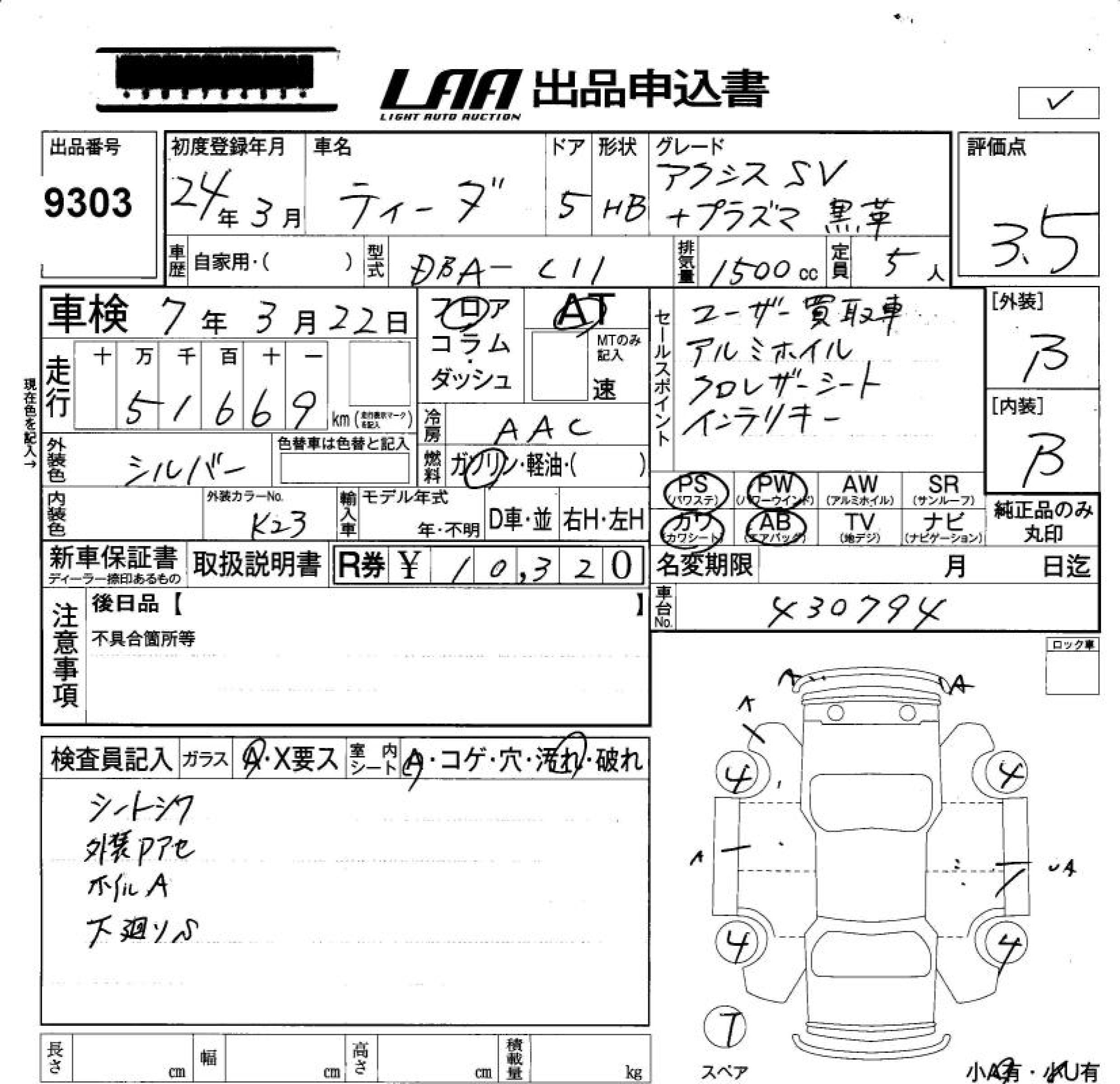 NISSAN TIIDA - лот 9303