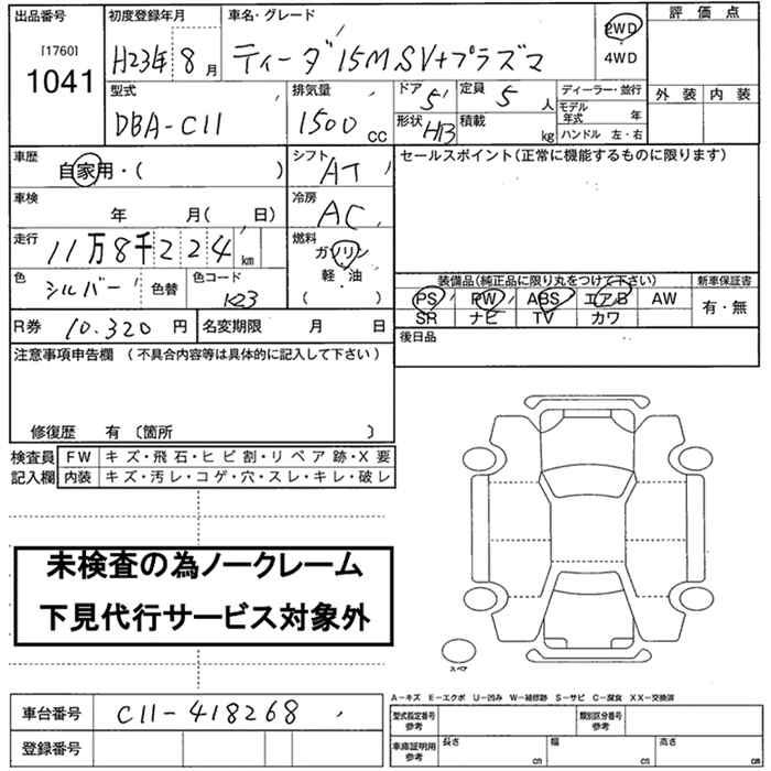 NISSAN TIIDA - лот 1041