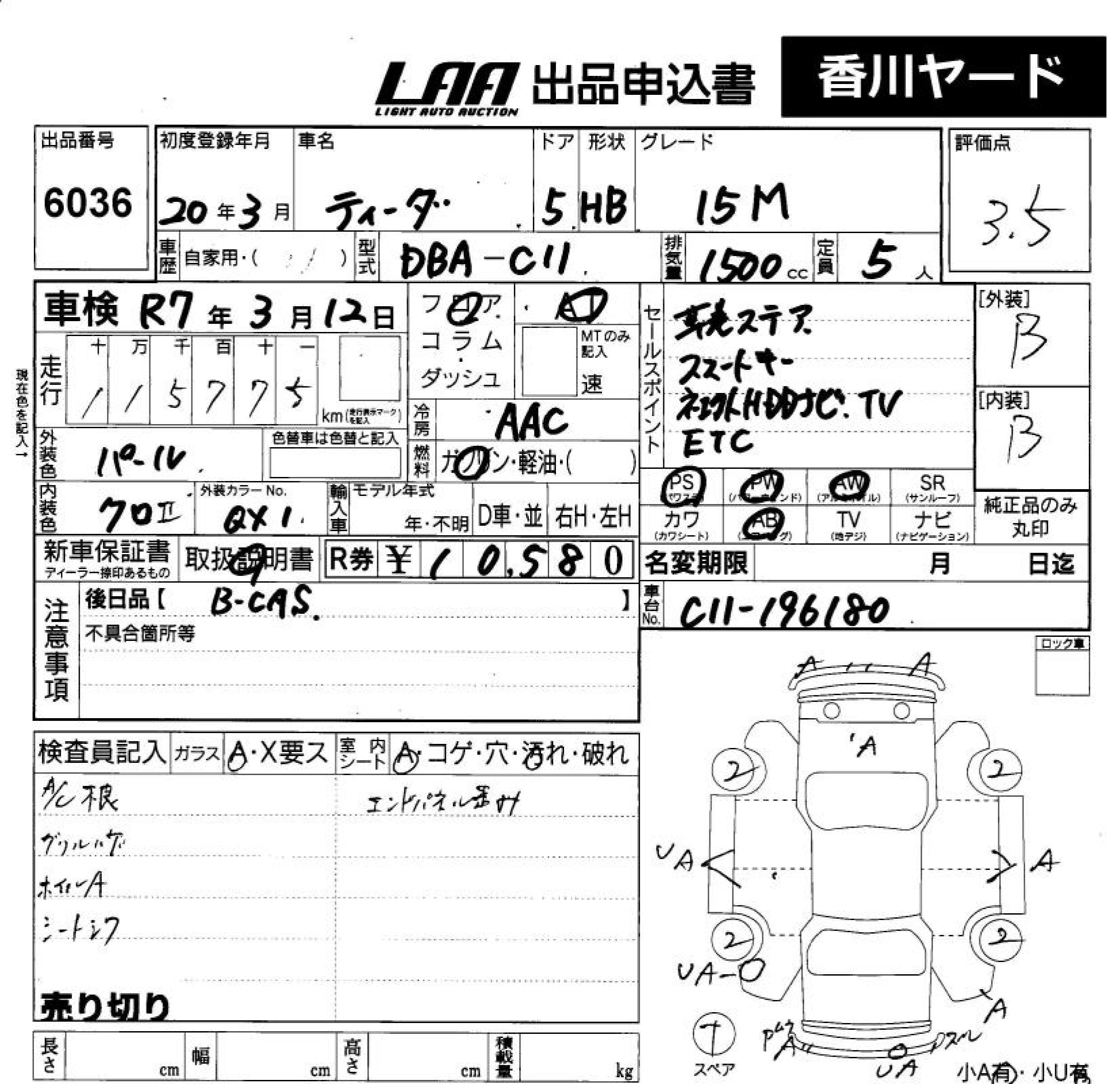 NISSAN TIIDA - лот 6036