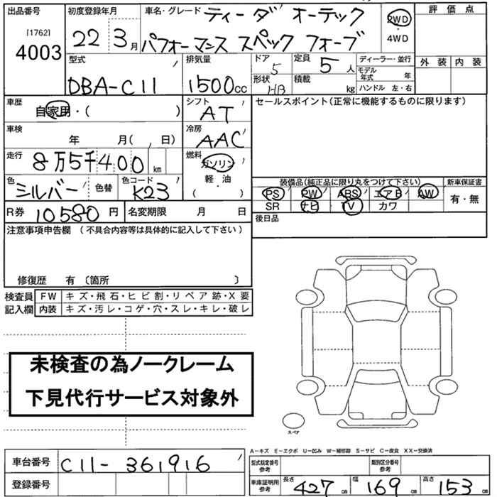 Все аукционы NISSAN TIIDA