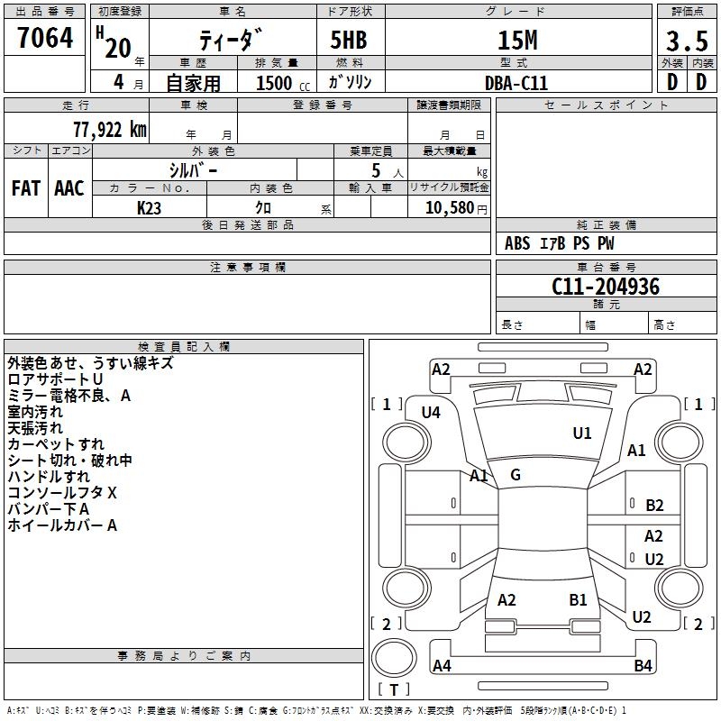 NISSAN TIIDA - лот 7064