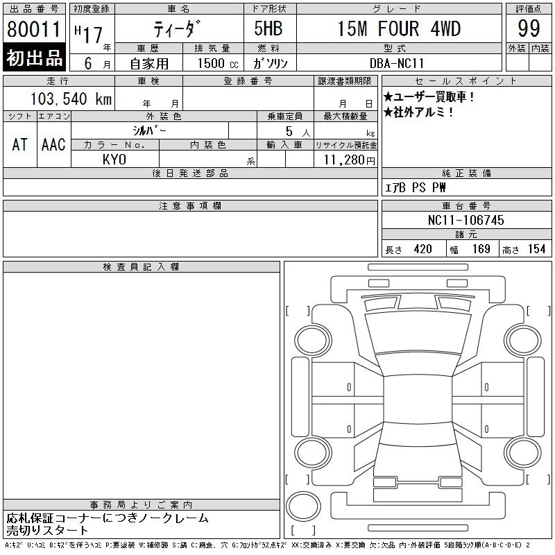 NISSAN TIIDA 15M FOUR 4WD - лот 80011
