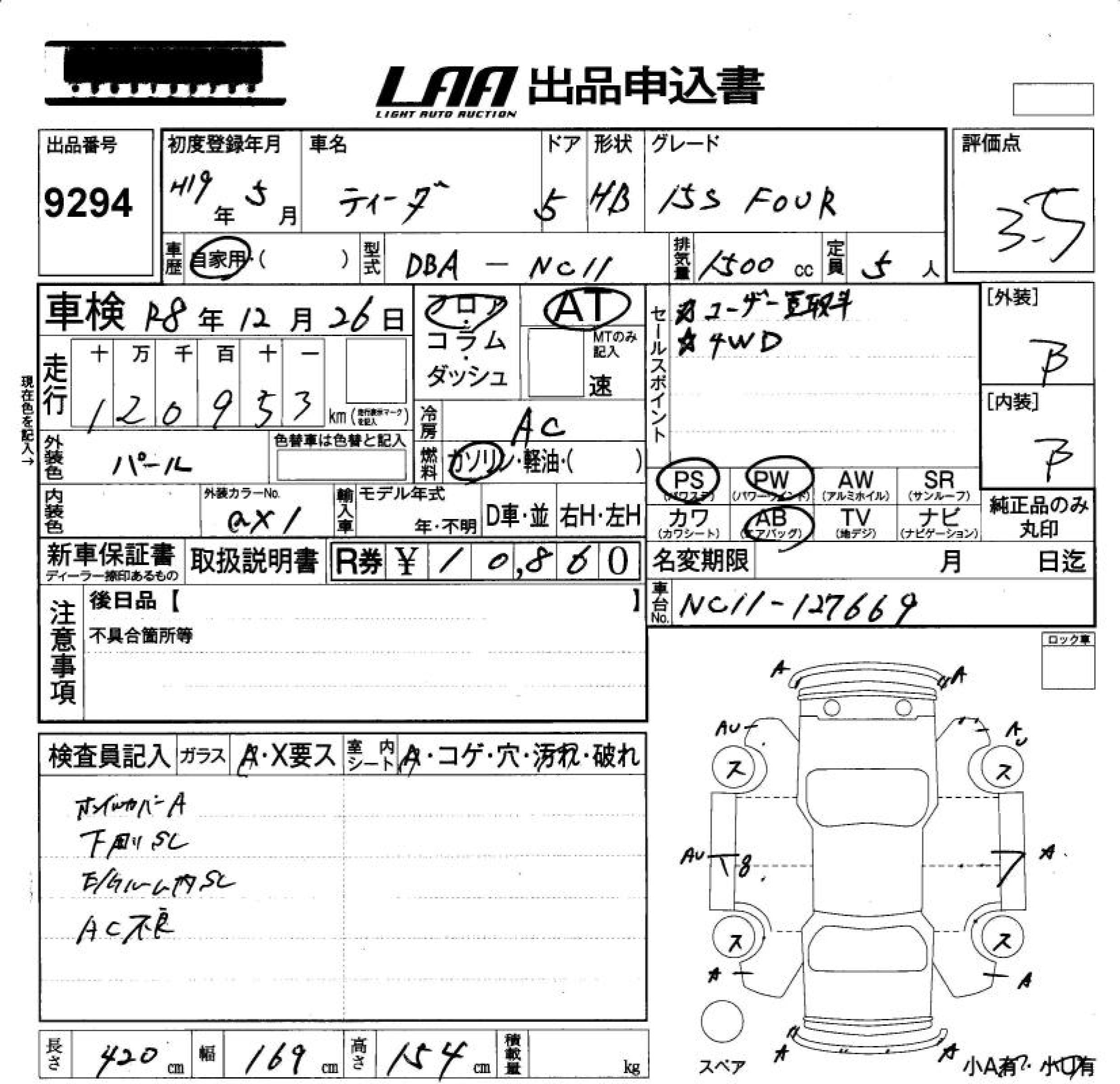 NISSAN TIIDA 15S FOUR - лот 9294