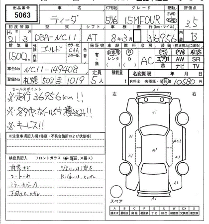 NISSAN TIIDA 4WD 15M FOUR - лот 5063