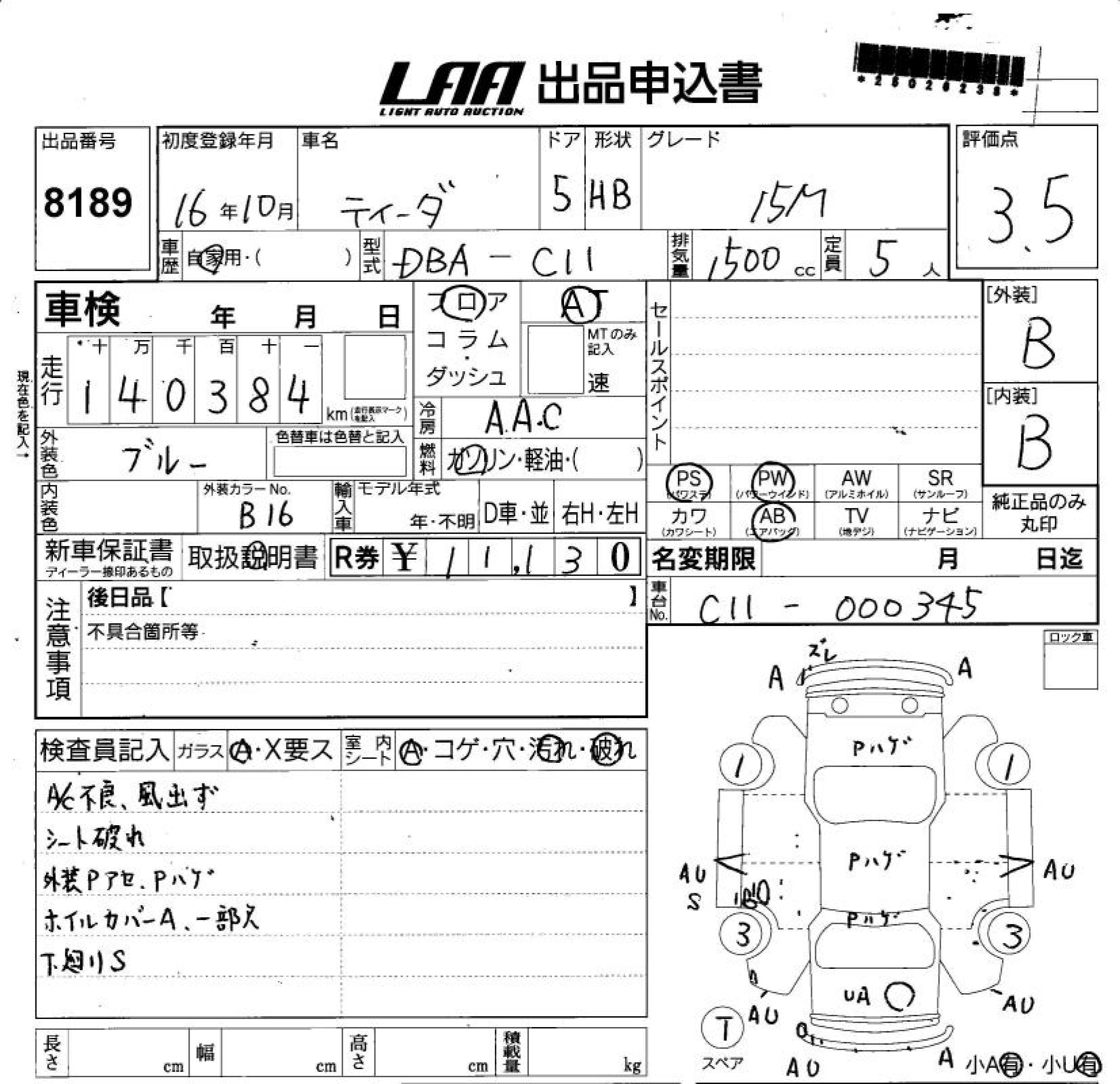 Все аукционы NISSAN TIIDA
