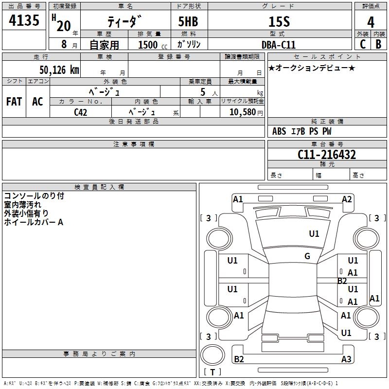 NISSAN TIIDA 15S - лот 4135