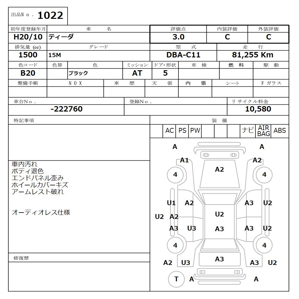 NISSAN TIIDA 15M - лот 1022