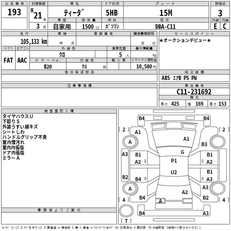 NISSAN TIIDA - лот 193