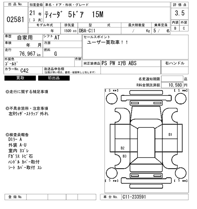 NISSAN TIIDA - лот 2581