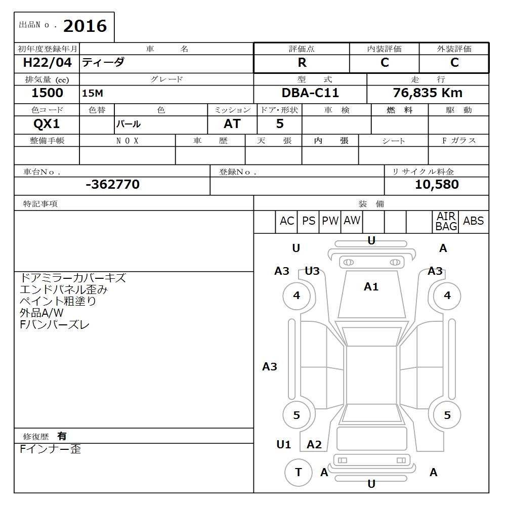 NISSAN TIIDA - лот 2016
