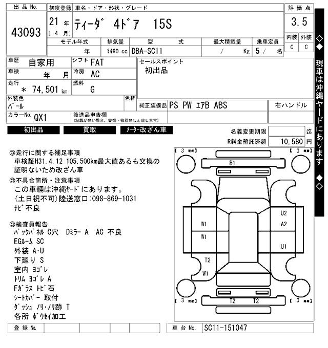 NISSAN TIIDA - лот 43093