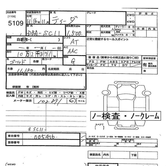 NISSAN TIIDA - лот 5109