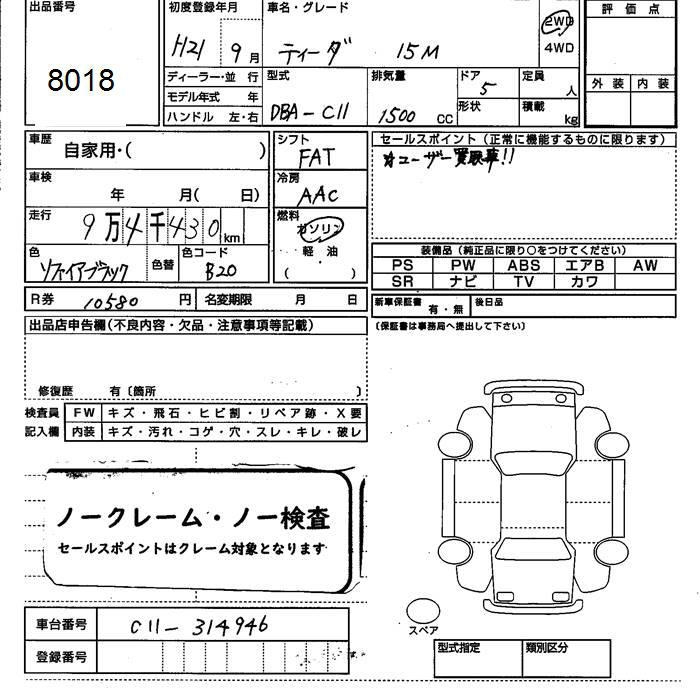 Все аукционы NISSAN TIIDA
