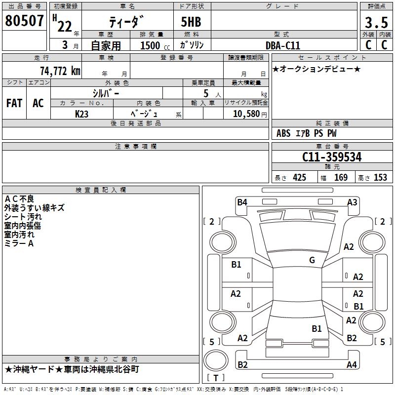 NISSAN TIIDA - лот 80507
