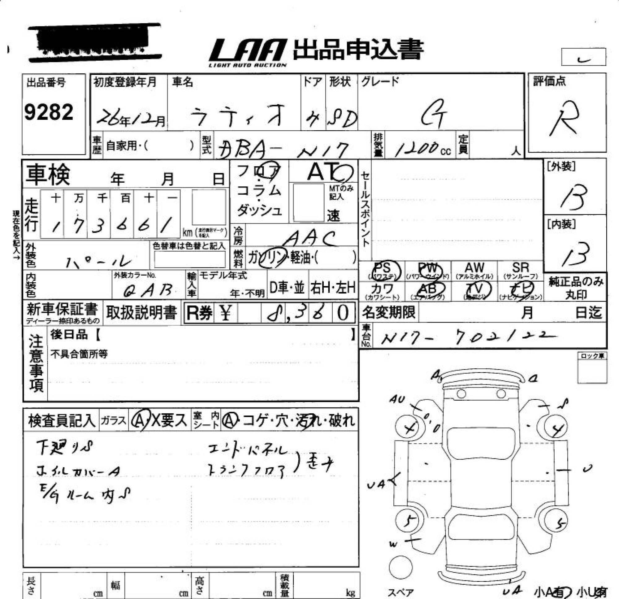 Все аукционы NISSAN TIIDA LATIO