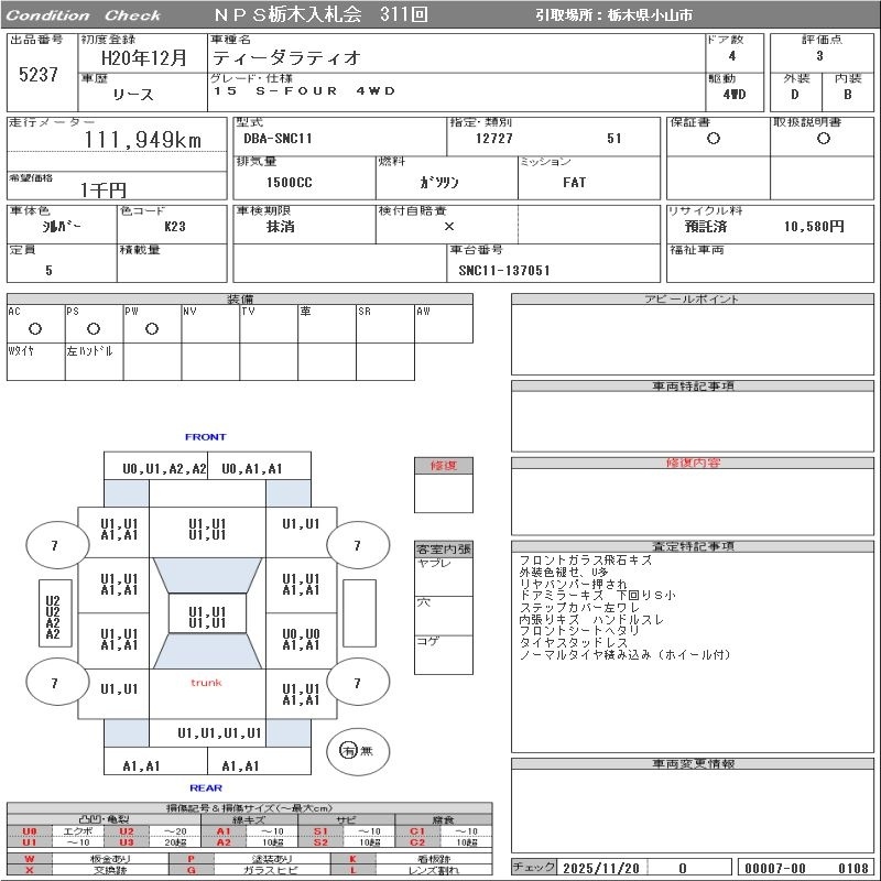 Все аукционы NISSAN TIIDA LATIO